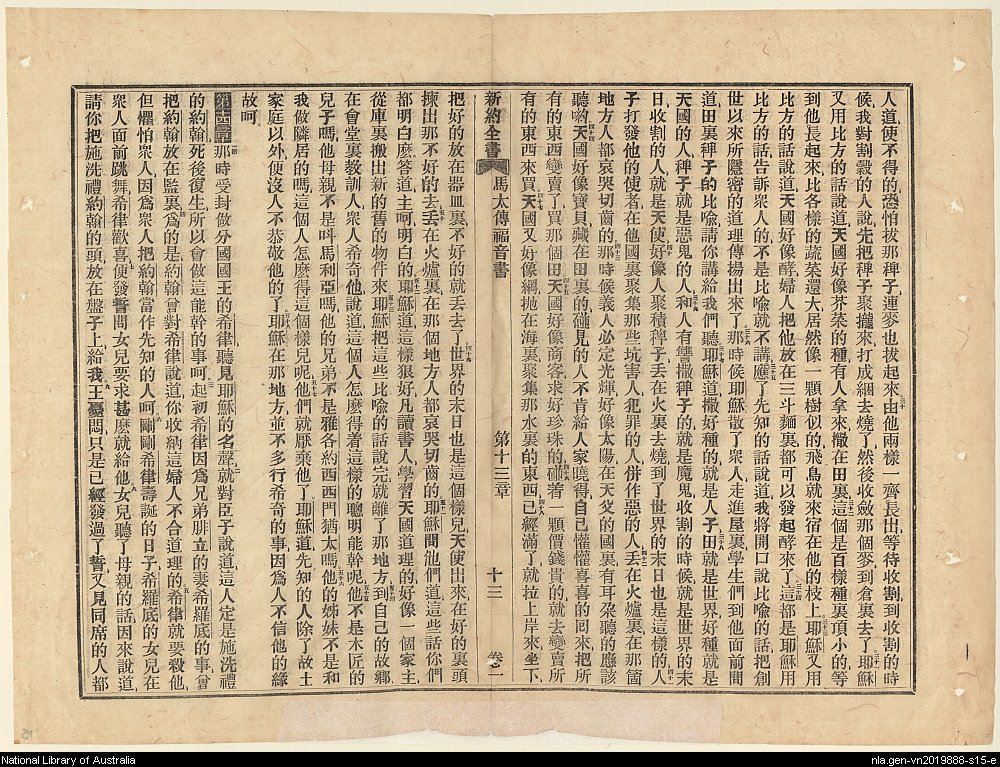 1856年新約四福音使徒行傳(南京官話譯本) 馬太福音 13 章 30 節到 14 章 9 節