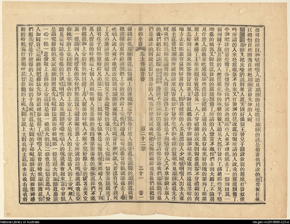 1856年新約四福音使徒行傳(南京官話譯本) 馬太福音 21 章 46 節到 22 章 44 節