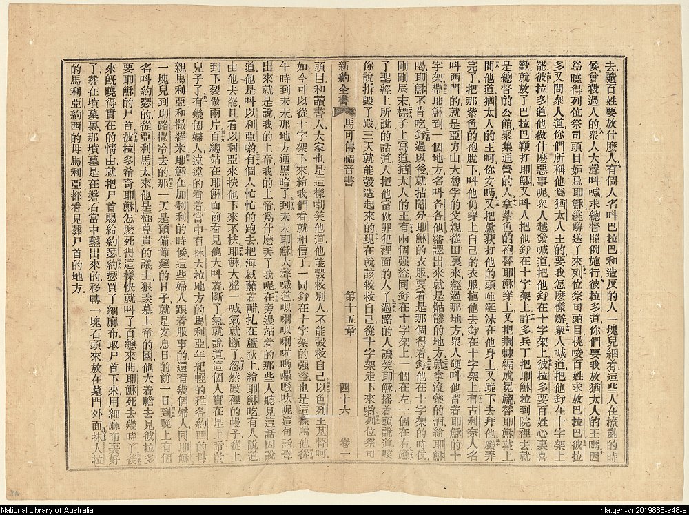 1856年新約四福音使徒行傳(南京官話譯本) 馬可福音 15 章 7 節到 15 章 47 節