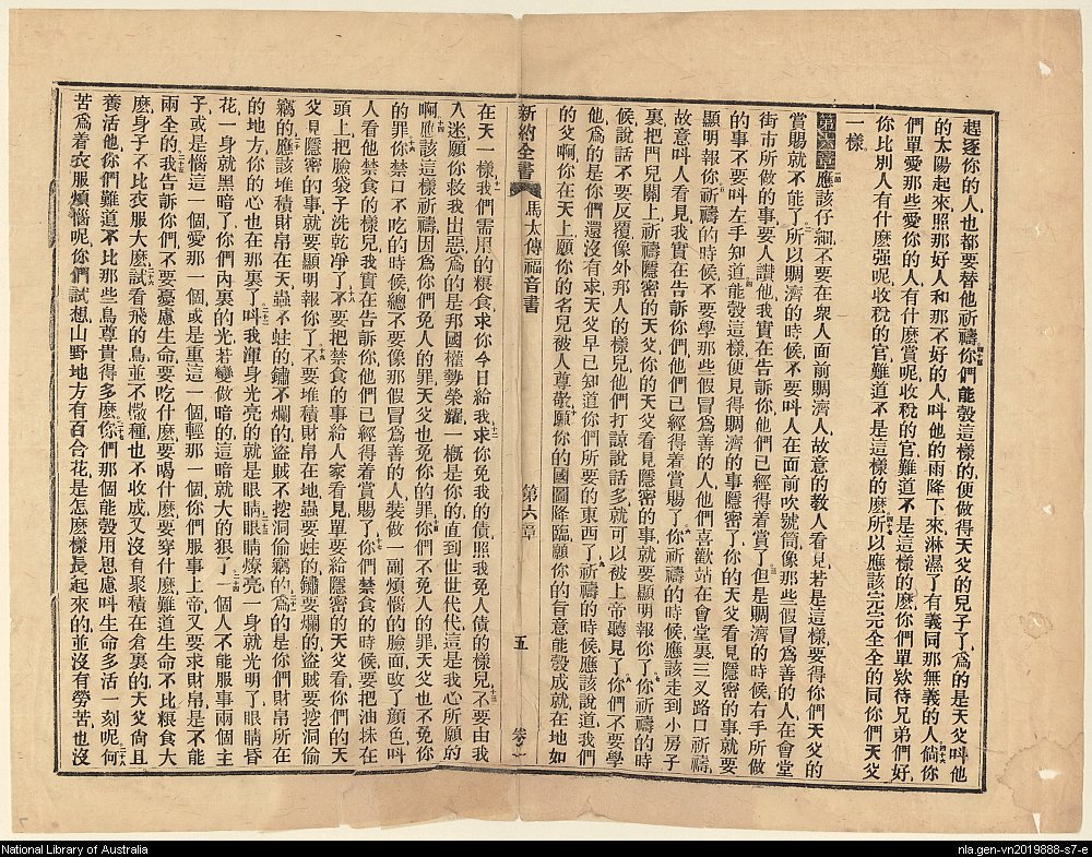 1856年新約四福音使徒行傳(南京官話譯本) 馬太福音 5 章 45 節到 6 章 28 節
