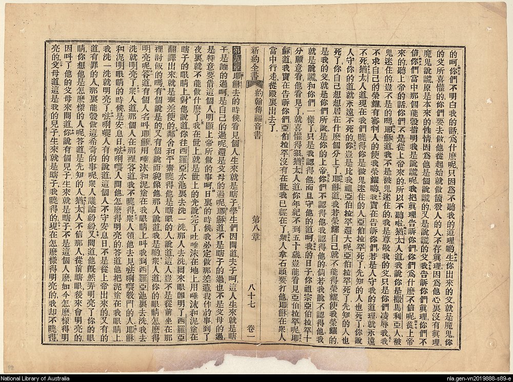 1856年新約四福音使徒行傳(南京官話譯本) 約翰福音 8 章 43 節到 9 章 21 節