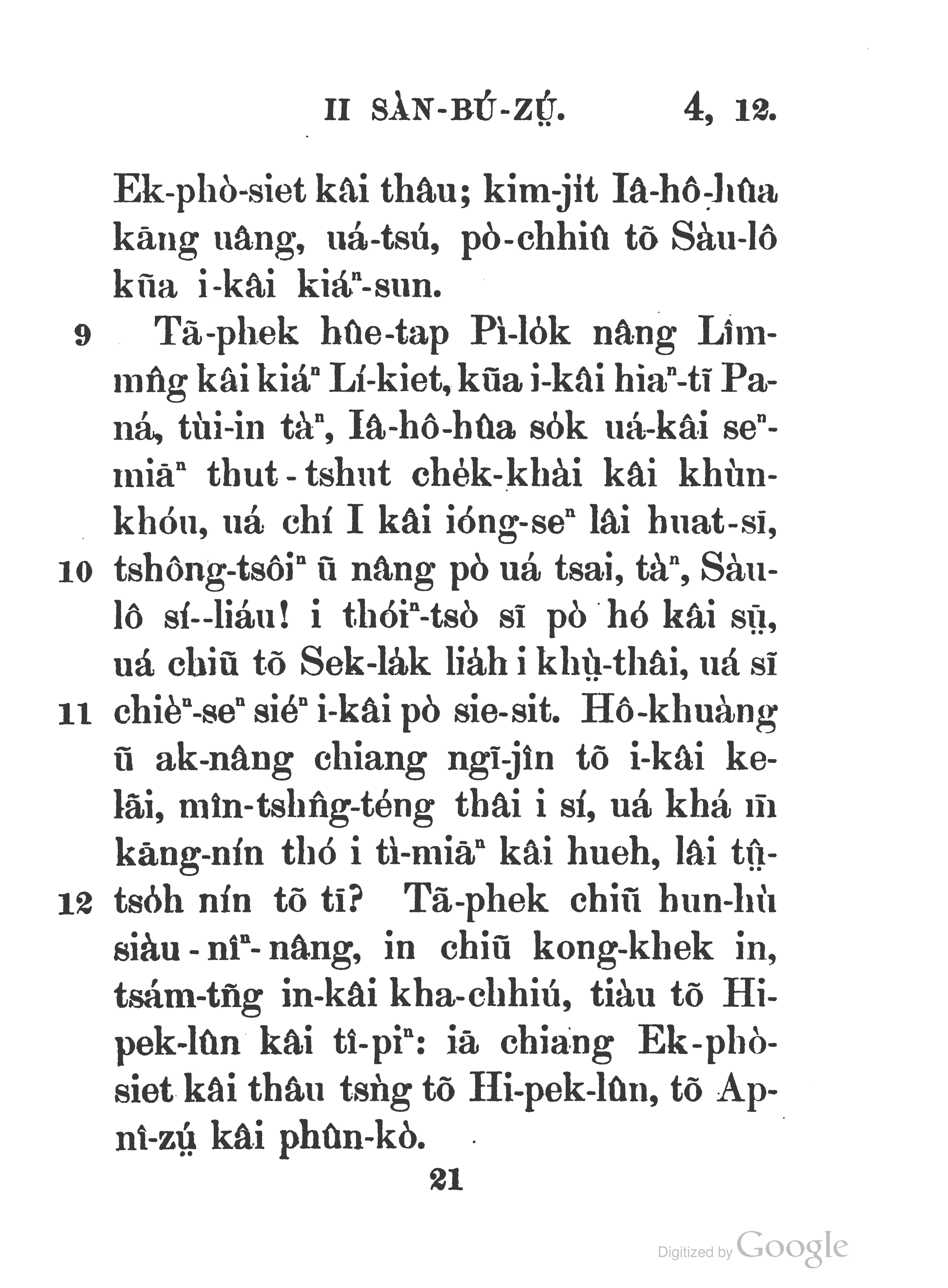 1898年舊約撒母耳下卷全書 撒母耳記下 4 章 9 節到 4 章 12 節
