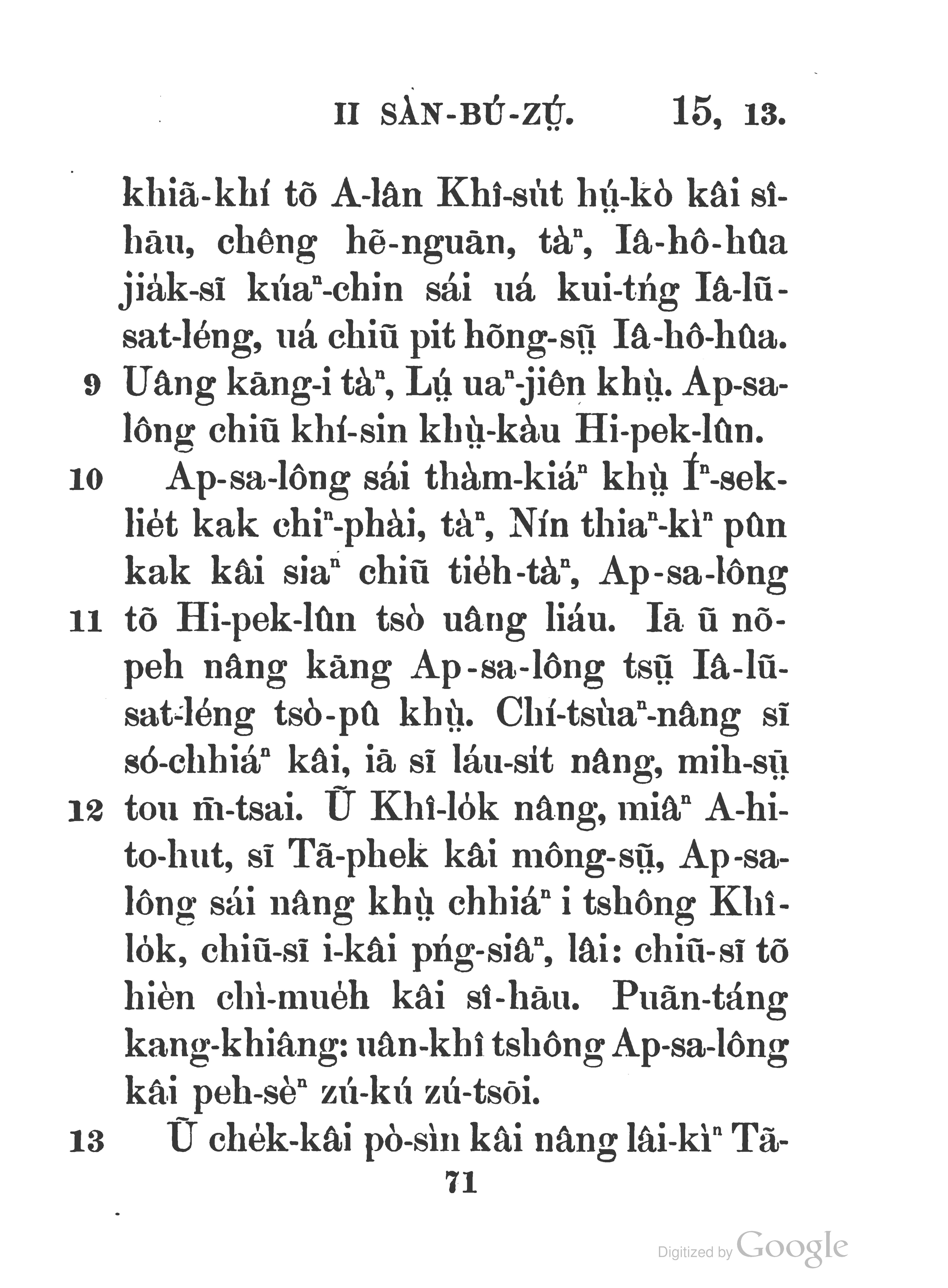 1898年舊約撒母耳下卷全書 撒母耳記下 15 章 9 節到 15 章 13 節