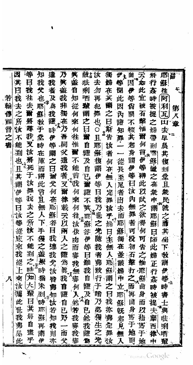 1822年新舊約全書 約翰福音 8 章 1 節到 8 章 23 節
