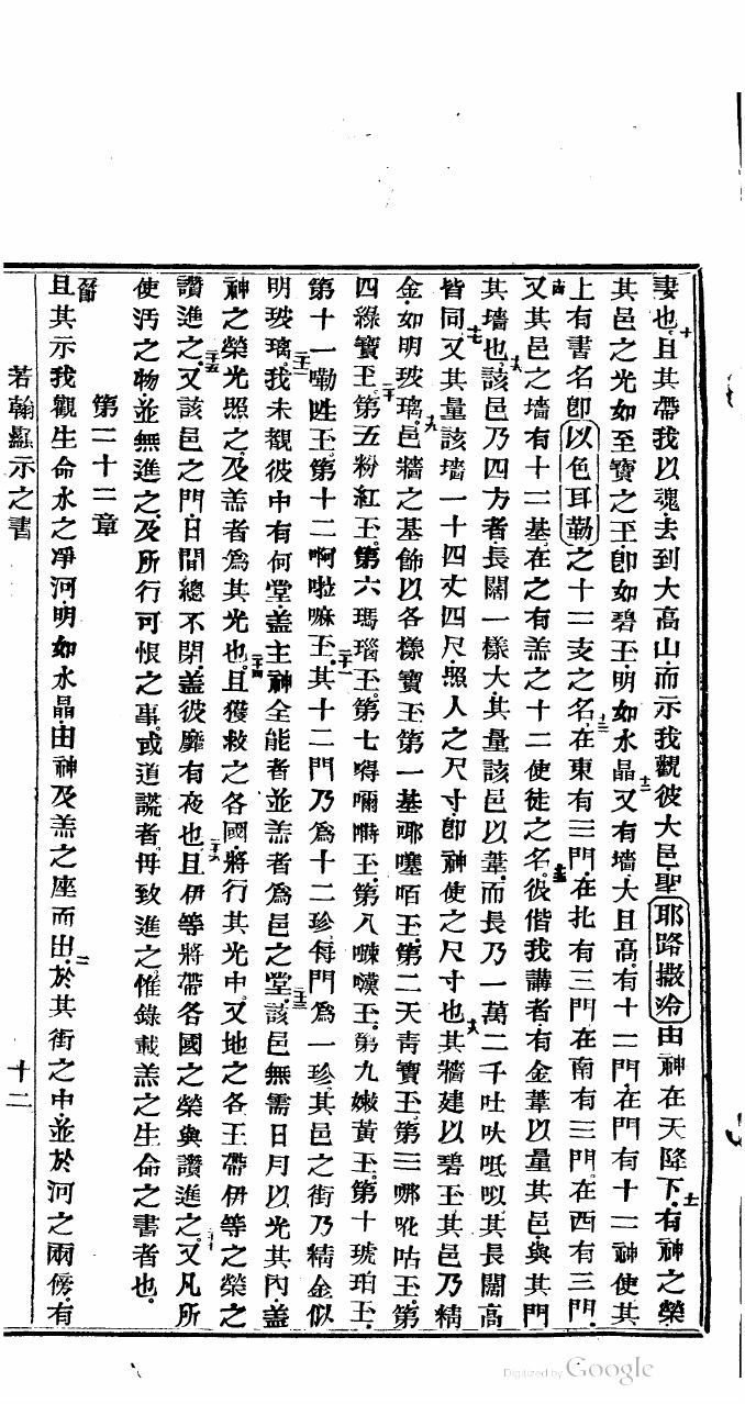 1822年新舊約全書 啟示錄 21 章 10 節到 22 章 2 節