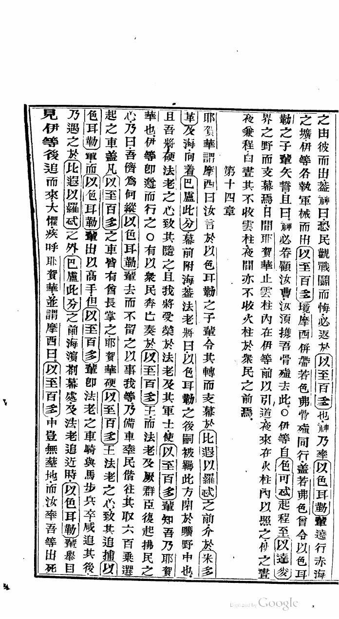 1822年新舊約全書 出埃及記 13 章 18 節到 14 章 11 節