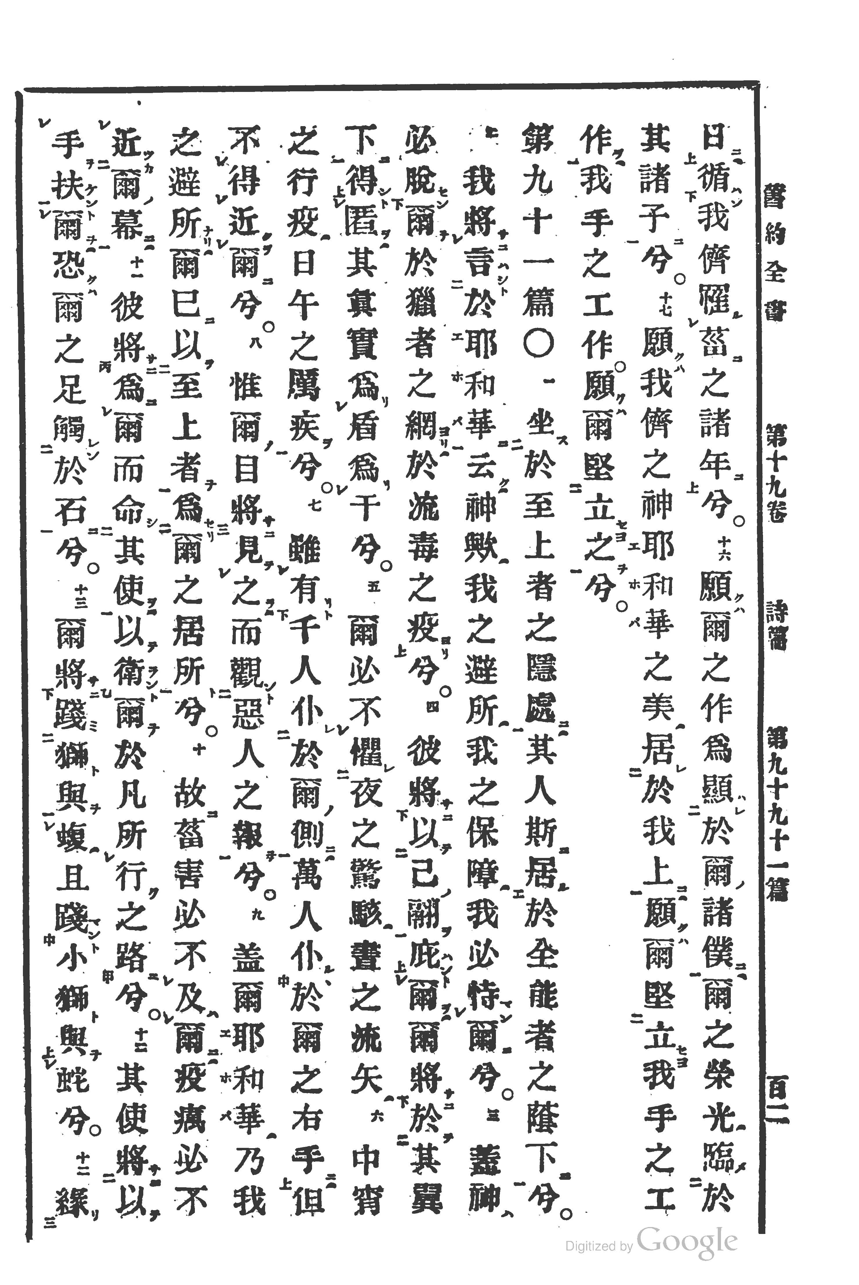 1880年訓典詩篇 詩篇 90 章 16 節到 91 章 14 節