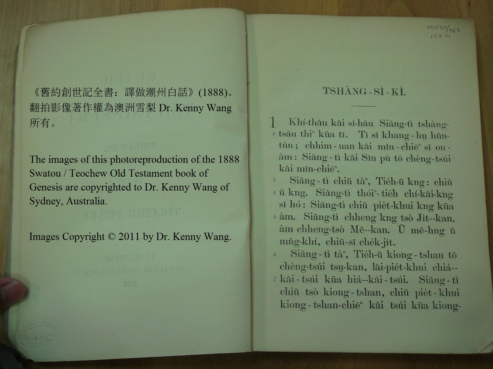 1888年舊約創世記全書 創世記 1 章 1 節到 1 章 7 節