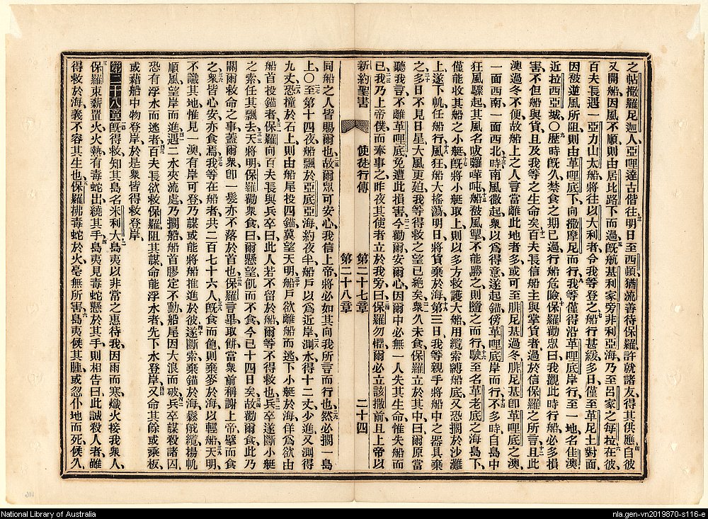 1886年新約全書 使徒行傳 27 章 3 節到 28 章 6 節