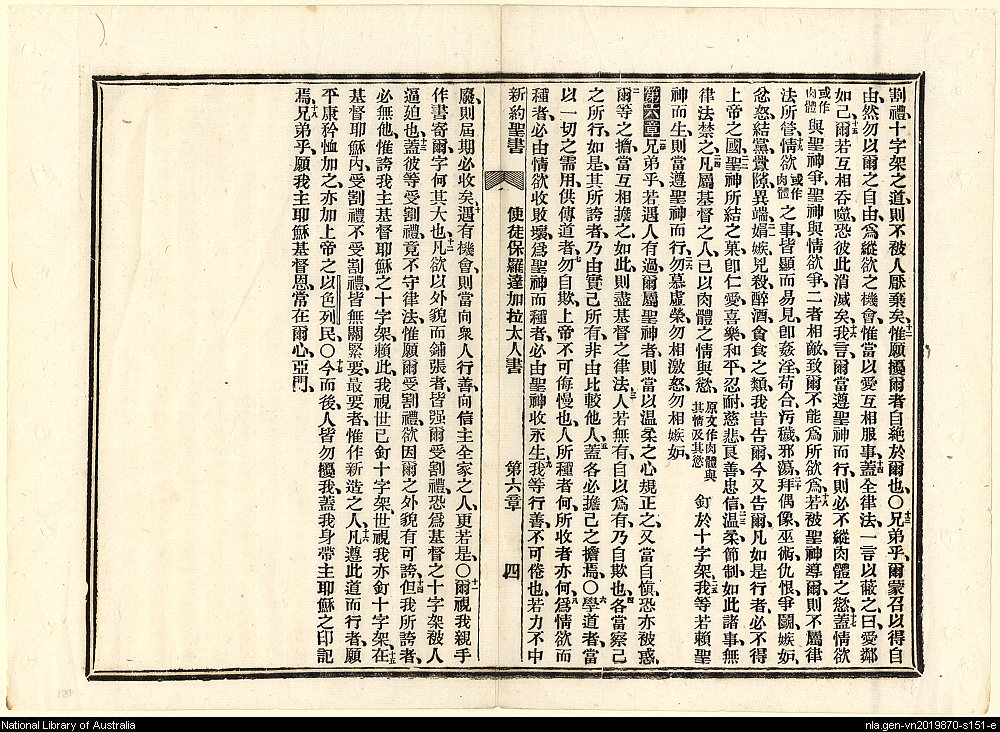 1886年新約全書 加拉太書 5 章 12 節到 6 章 18 節