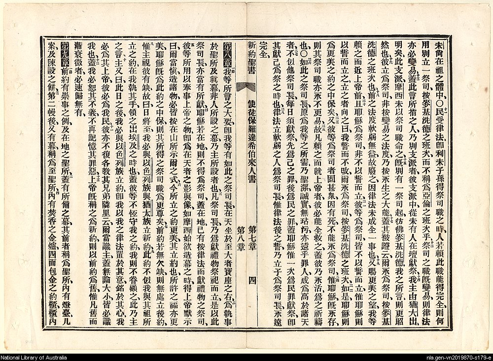 1886年新約全書 希伯來書 7 章 11 節到 9 章 4 節