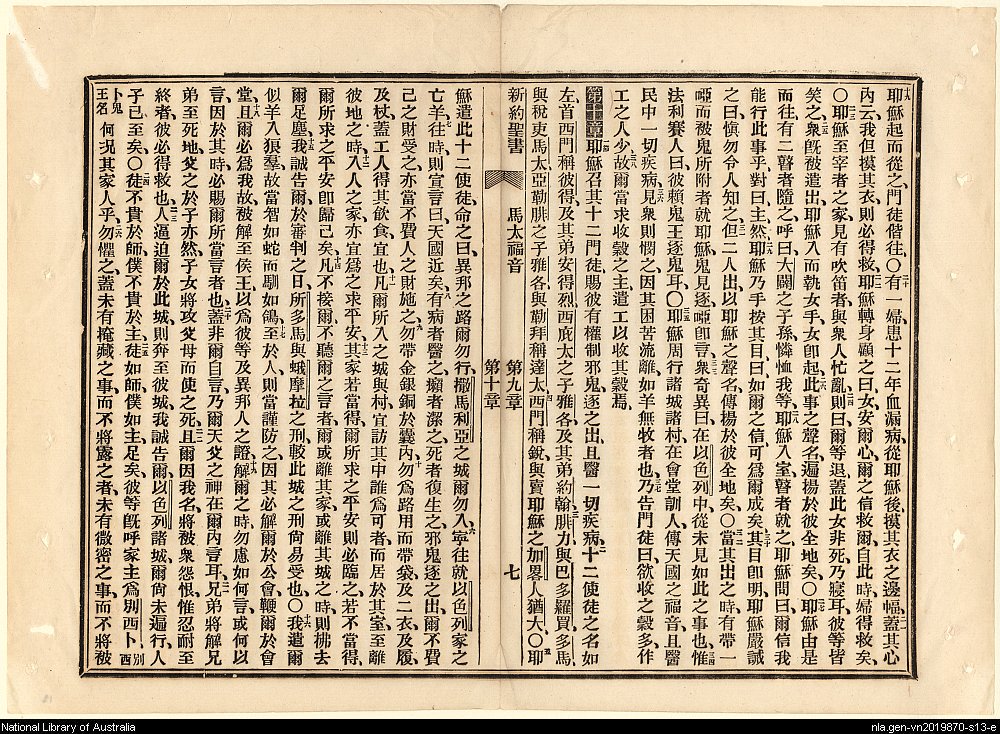 1886年新約全書 馬太福音 9 章 19 節到 10 章 26 節