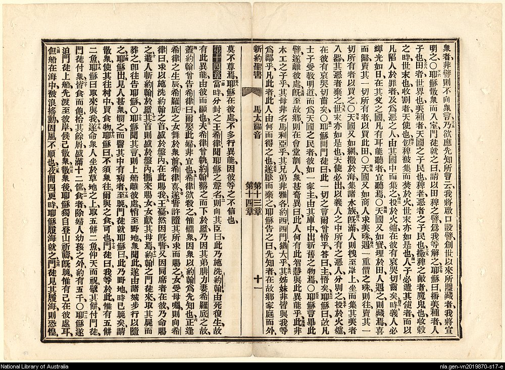 1886年新約全書 馬太福音 13 章 35 節到 14 章 26 節