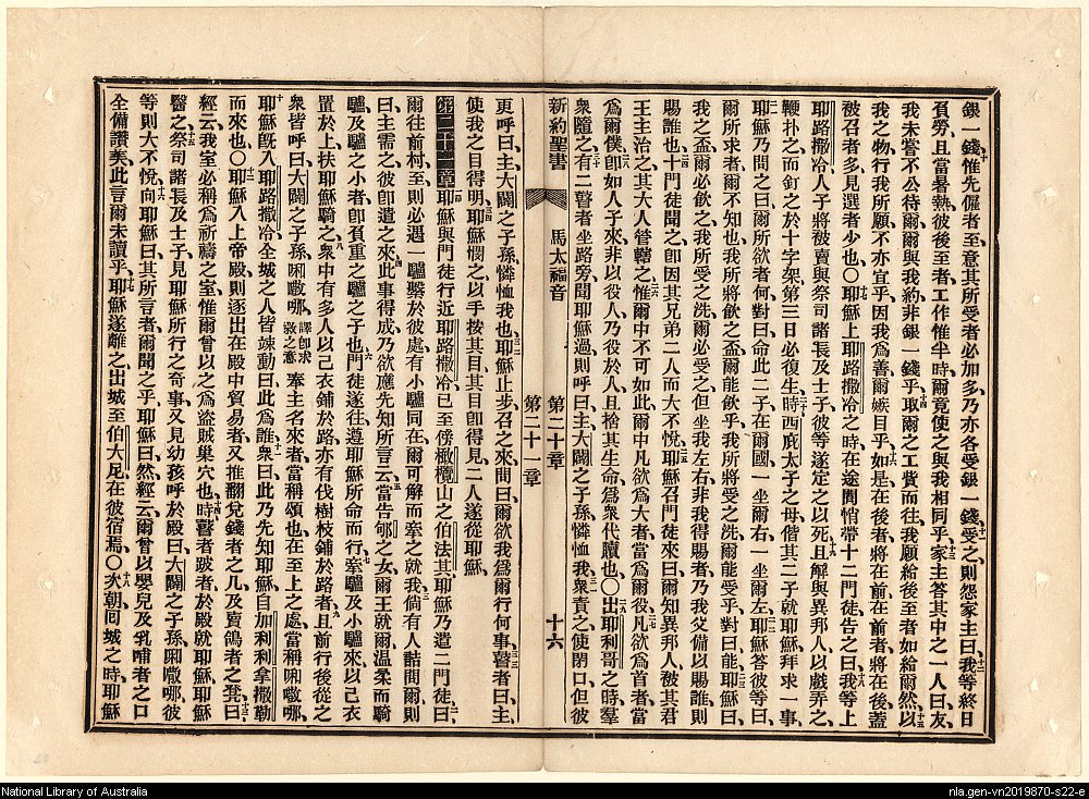 1886年新約全書 馬太福音 20 章 10 節到 21 章 18 節