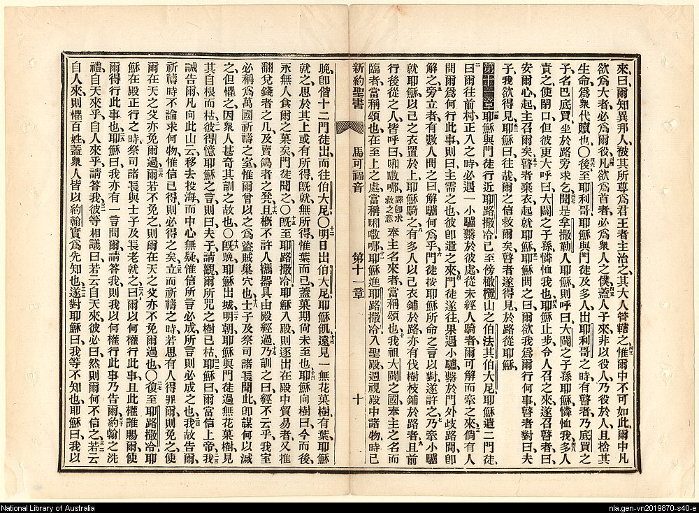 1886年新約全書 馬可福音 10 章 43 節到 11 章 33 節
