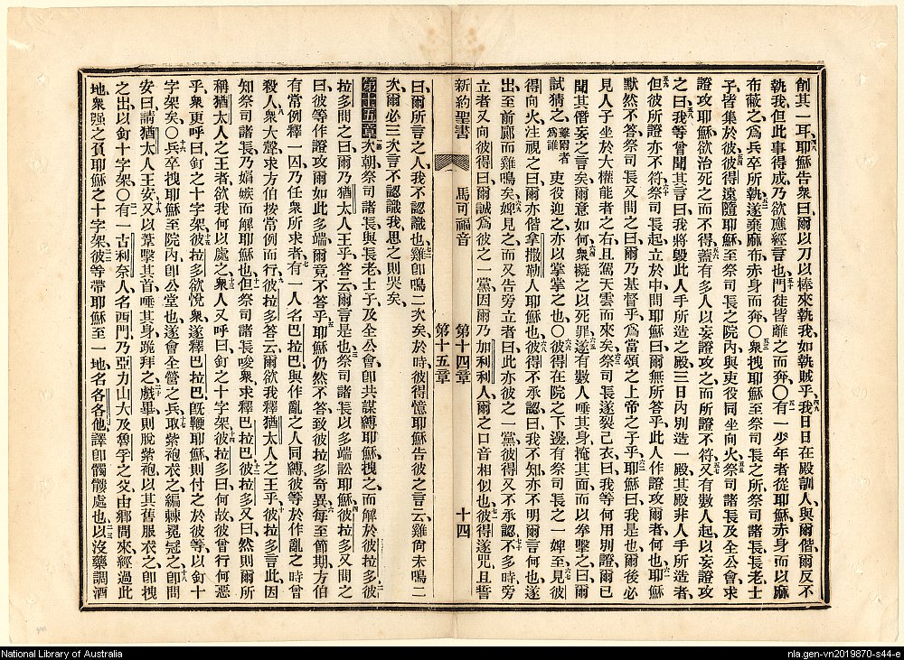 1886年新約全書 馬可福音 14 章 48 節到 15 章 23 節
