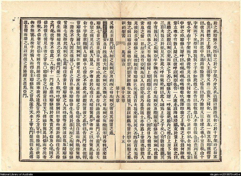 1886年新約全書 馬可福音 15 章 24 節到 16 章 20 節