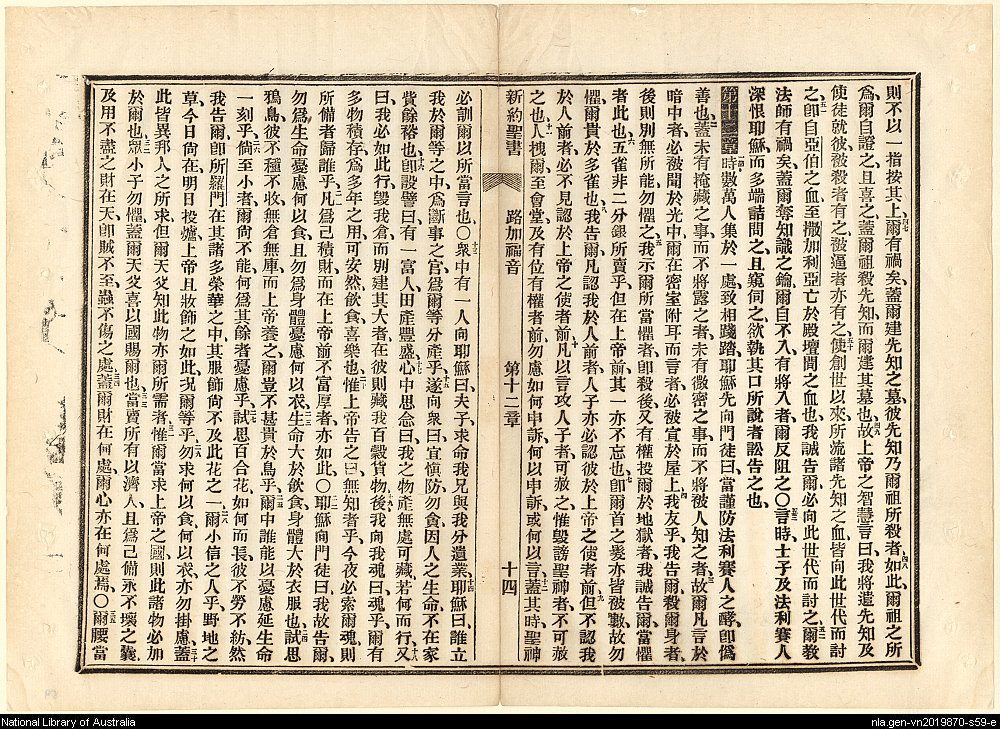 1886年新約全書 路加福音 11 章 47 節到 12 章 35 節