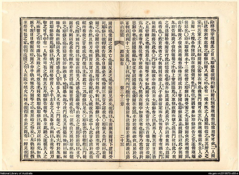 1886年新約全書 路加福音 22 章 7 節到 22 章 56 節