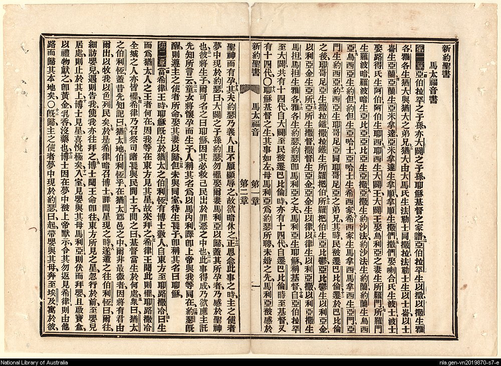 1886年新約全書 馬太福音 1 章 1 節到 2 章 13 節