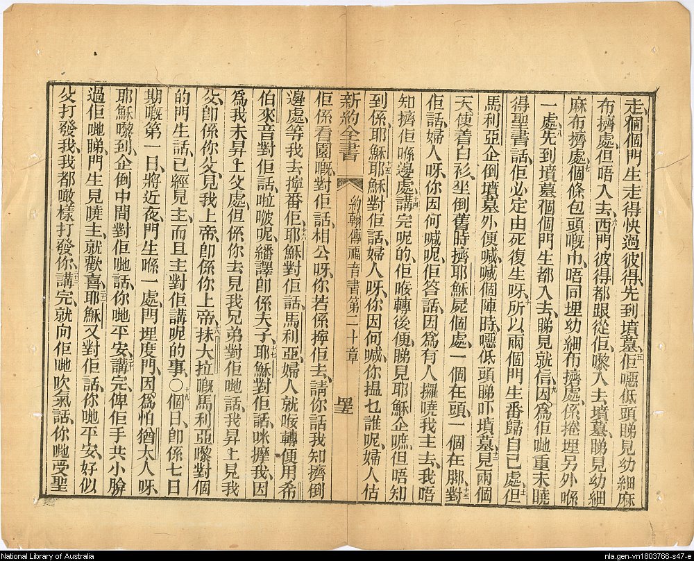 1883年新約四福音 約翰福音 20 章 5 節到 20 章 22 節