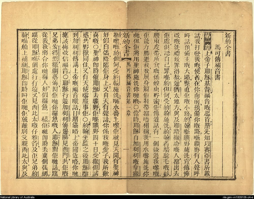 1883年新約四福音 馬可福音 1 章 1 節到 1 章 20 節