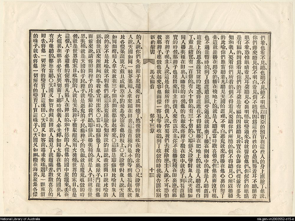 1889年新約全書 馬太福音 13 章 14 節到 13 章 47 節