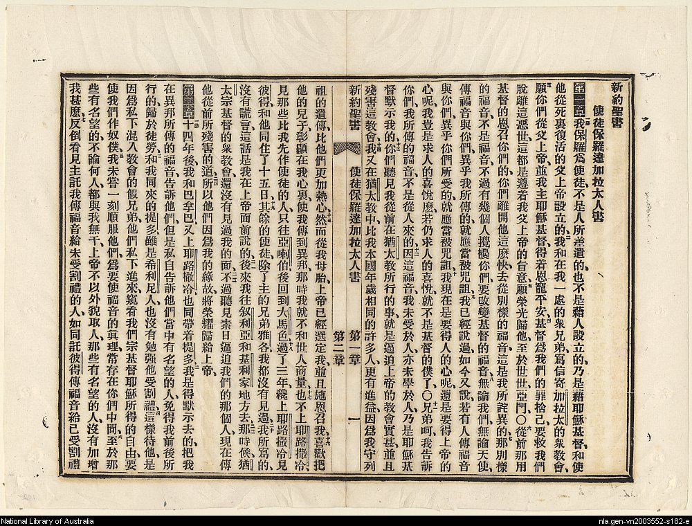1889年新約全書 加拉太書 1 章 1 節到 2 章 7 節
