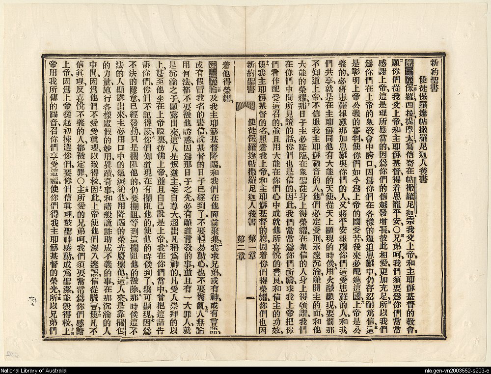 1889年新約全書 帖撒羅尼迦後書 1 章 1 節到 2 章 15 節