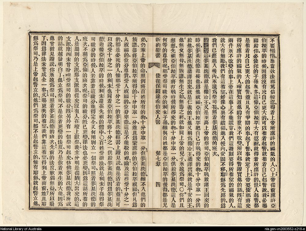 1889年新約全書 希伯來書 6 章 13 節到 7 章 21 節
