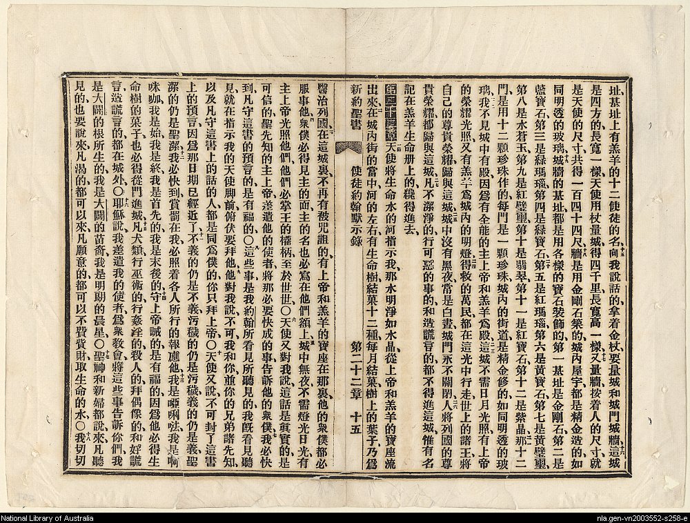 1889年新約全書 啟示錄 21 章 15 節到 22 章 18 節
