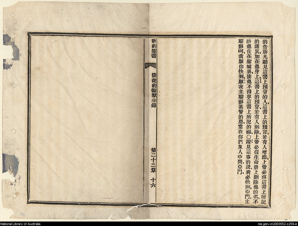 1889年新約全書 啟示錄 22 章 19 節到 22 章 21 節