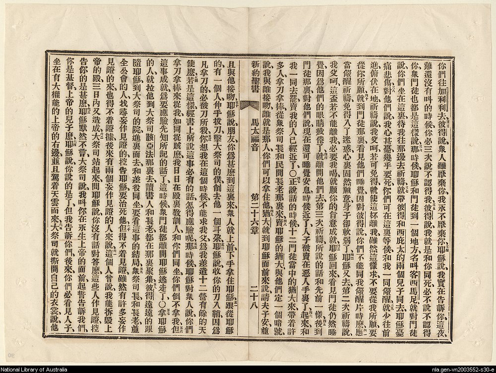 1889年新約全書 馬太福音 26 章 33 節到 26 章 65 節