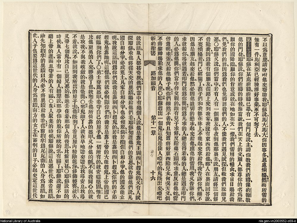 1889年新約全書 路加福音 10 章 41 節到 11 章 31 節