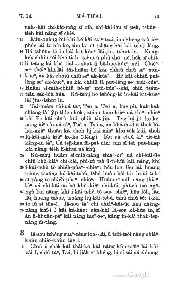 1892年新約馬太福音-使徒行傳 馬太福音 7 章 15 節到 8 章 2 節