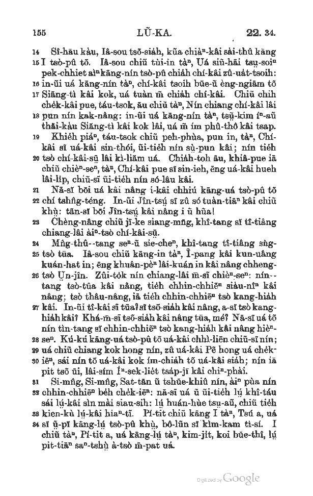 1892年新約馬太福音-使徒行傳 路加福音 22 章 14 節到 22 章 34 節