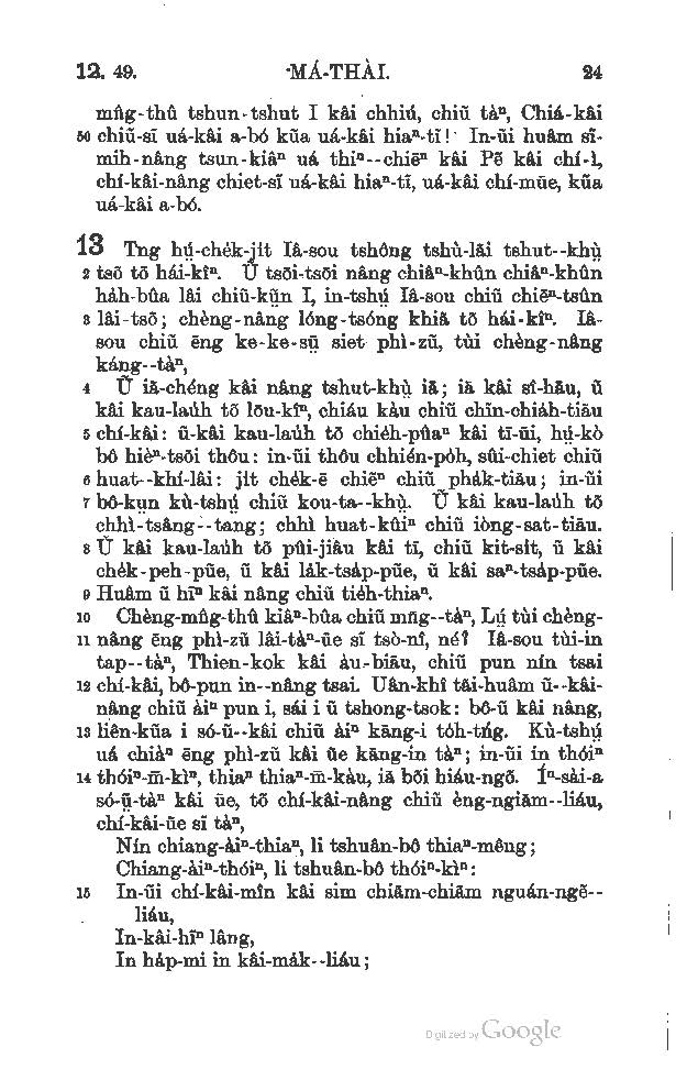 1892年新約馬太福音-使徒行傳 馬太福音 12 章 50 節到 12 章 15 節