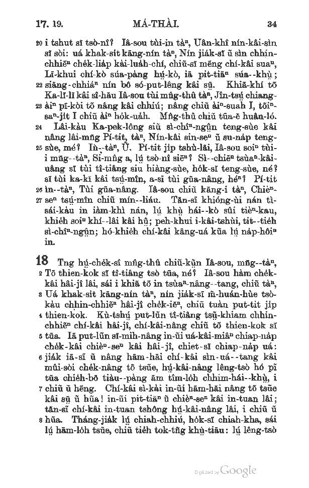 1892年新約馬太福音-使徒行傳 馬太福音 17 章 20 節到 18 章 8 節