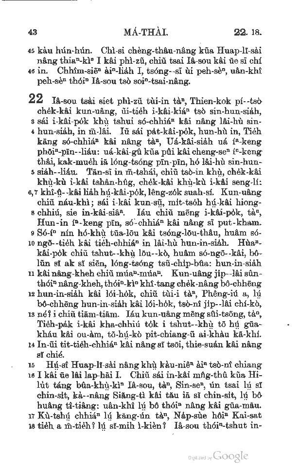 1892年新約馬太福音-使徒行傳 馬太福音 21 章 45 節到 22 章 18 節