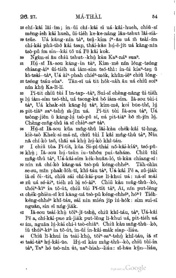 1892年新約馬太福音-使徒行傳 馬太福音 26 章 28 節到 26 章 45 節