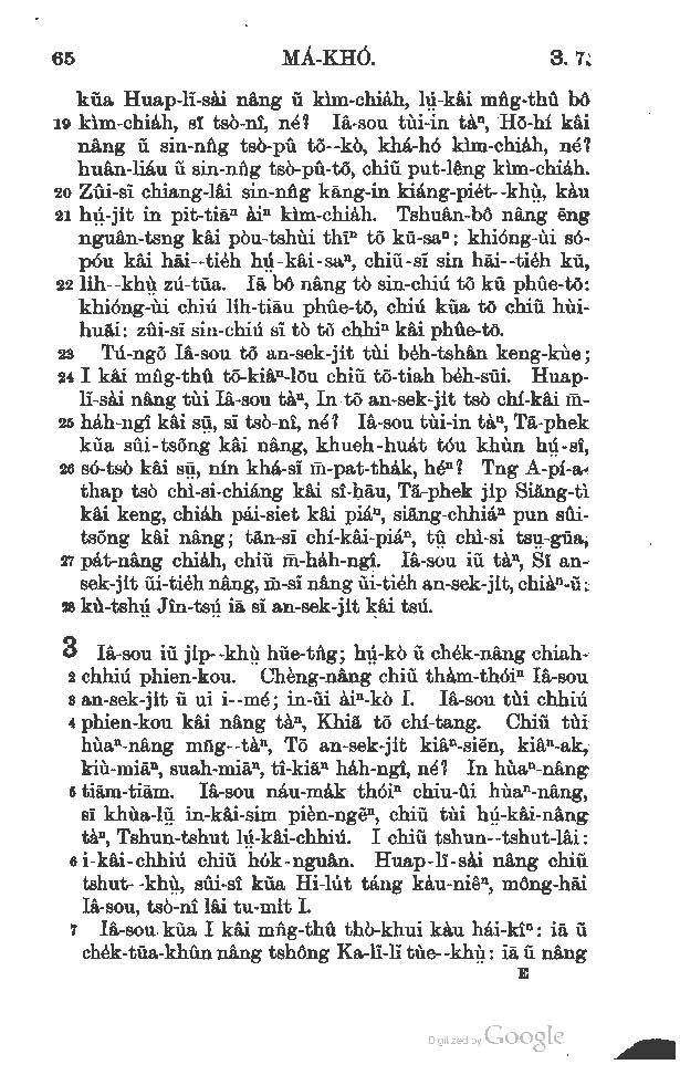 1892年新約馬太福音-使徒行傳 馬可福音 2 章 19 節到 3 章 7 節