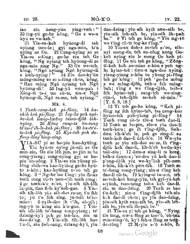 1897年新約全書 馬可福音 3 章 20 節到 4 章 22 節