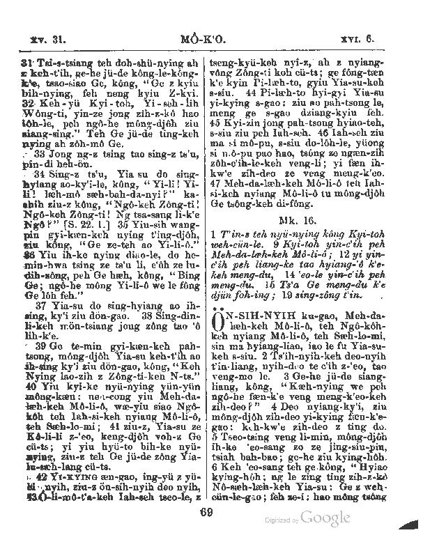 1897年新約全書 馬可福音 15 章 31 節到 16 章 6 節