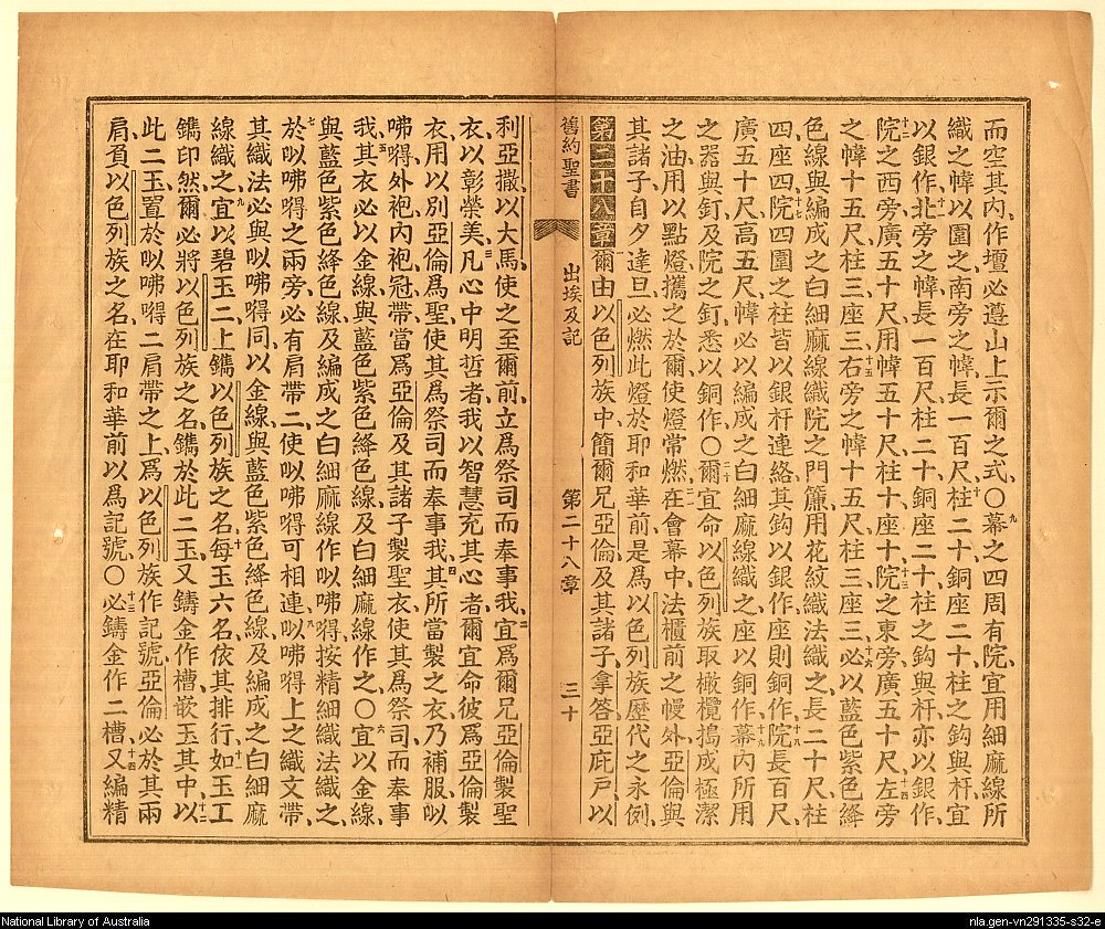 1905年舊約出埃及記 出埃及記 27 章 9 節到 28 章 14 節