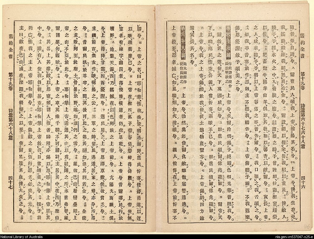 1885年舊約詩篇(訓點舊約聖書詩篇) 詩篇 66 章 8 節到 68 章 23 節