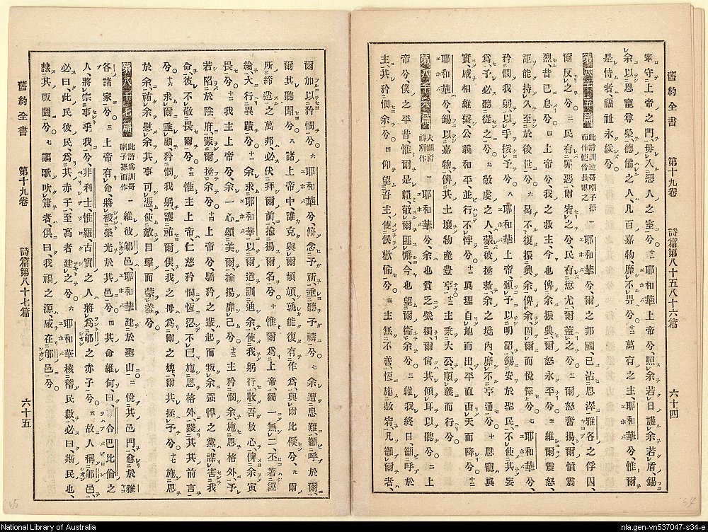 1885年舊約詩篇(訓點舊約聖書詩篇) 詩篇 84 章 11 節到 87 章 7 節