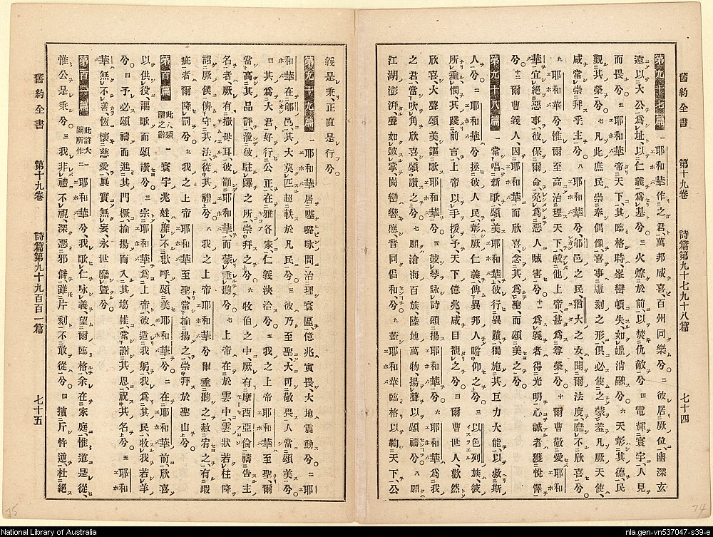 1885年舊約詩篇(訓點舊約聖書詩篇) 詩篇 97 章 1 節到 101 章 4 節