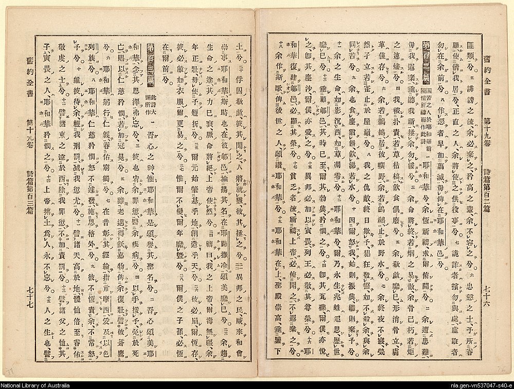 1885年舊約詩篇(訓點舊約聖書詩篇) 詩篇 101 章 5 節到 103 章 15 節