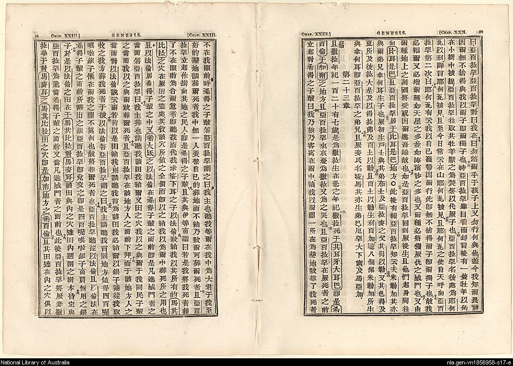 1823年舊約創世記、出埃及記 創世記 22 章 12 節到 23 章 20 節
