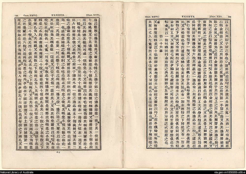 1823年舊約創世記、出埃及記 出埃及記 25 章 23 節到 26 章 25 節